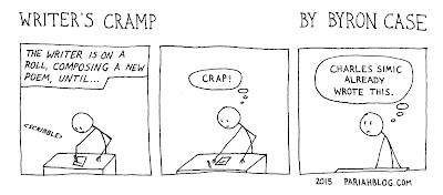 “It’s all about cats!” Lefty said when he lent me his copy of Chappell’s latest collection. I think he was a little let down. After the noteworthy Midquest, which I read and reviewed here last year, Lefty expected more grandness than ailurophilia out of his favorite poet. Familiars isn’t without worth, though. The poems’ frequently simple structures and rhyme schemes make them accessible, while Chappell’s wit gives readers craving depth a little nook in which to sink. A forward tells us that most of the pieces here originally appeared in a limited-edition book cleverly titled Companion Volume, the paper for which was made out of cat hair.